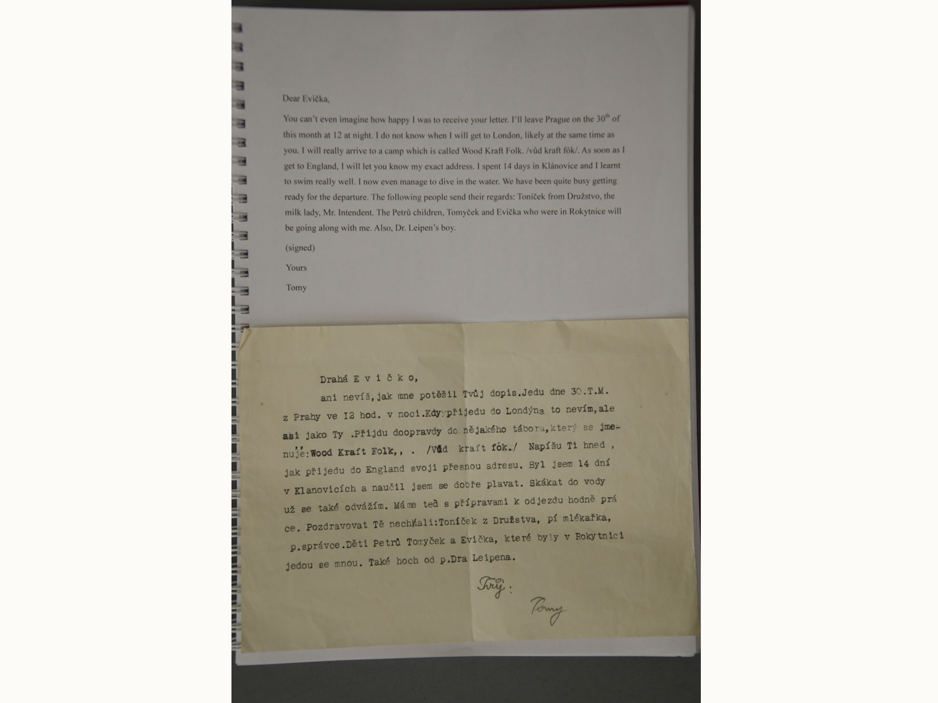I was expecting Tomy and of course he was on the last train that never left Prague. But no I think, I knew that there would be no question of people coming from Czechoslovakia to England.
